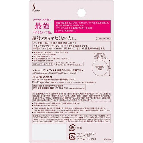 【原産国】日本【ブランド】プリマヴィスタ(Primavista)【発売元、製造元、輸入元又は販売元】花王商品に関するお電話でのお問合せは、下記までお願いいたします。